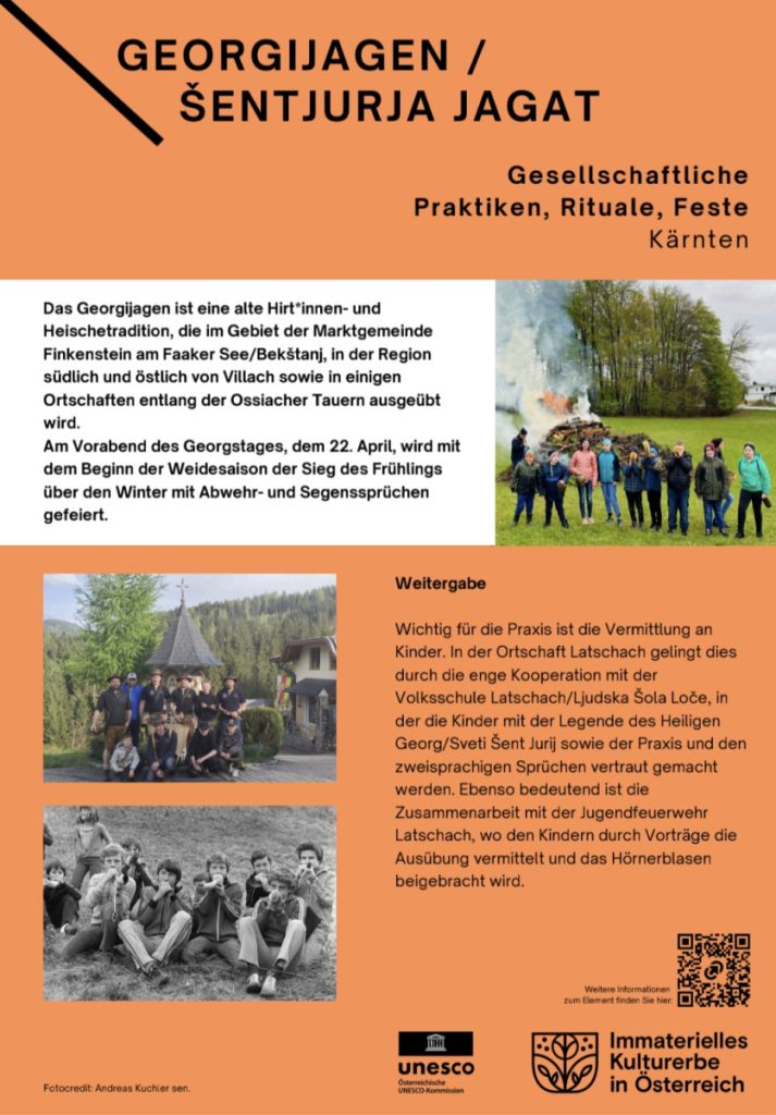 Projekt der Dorfgemeinschaft Latschach zusammen mit anderen Gemeinschaften beider Volksgruppen mit dem Ziel den Brauch als Immaterielles Kulturerbe der UNESCO (Nationales Verzeichnis) zu verankern : Mit 06. November 2025 wurde das Georgijagen/Šenturja jahat aufgenommen.