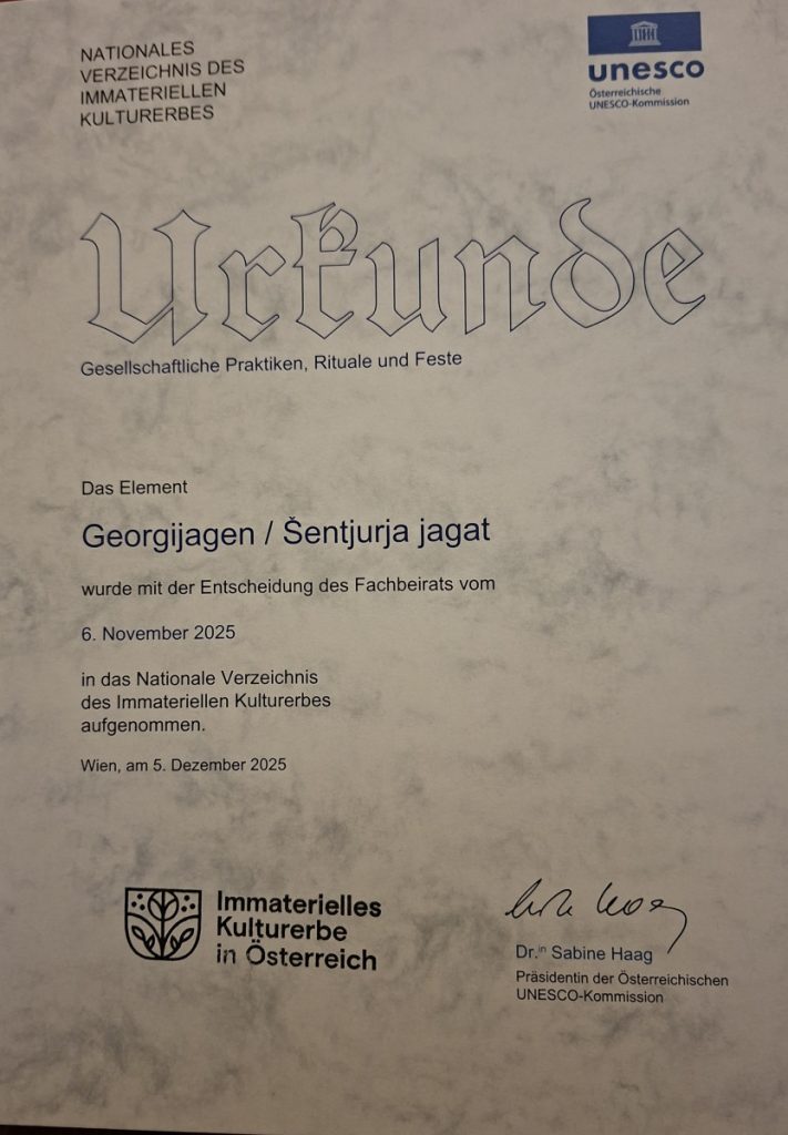 Der lange Weg in die Wachau hat sich gelohnt, wurde mit der Urkundenverleihung anlässlich der Aufnahme des Georgijagens/Šenturja jahat als Immaterielles Kulturerbe ein Stück Finkensteiner Geschichte geschrieben. Nach einem herzlichen Empfang durch den aus Ratnitz stammenden Generalsekräter der Österreichischen Unesco Kommission, Martin Fritz, begann eine unvergessliche Feier.