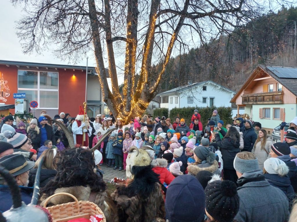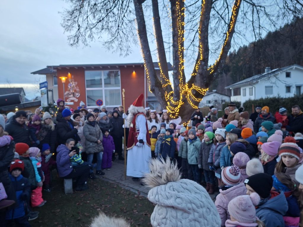 Als der Nikolaus mit seinem Gefolge am festlich geschmückten Dorfplatz eintraf, warteten bereits etwa 140 Kinder auf ihn. Er lauschte die schönen Lieder und Gedichte, die ihm die Schüler der Volksschule Latschach vortrugen. Dann überreichte er die Geschenke und sprach mit den Kindern. Dabei wurde er heuer erstmals von vier Engeln unterstützt. Für das ältere Publikum gab es guten Tee, Glühmost und Köstlichkeiten aus der Weihnachtsbäckerei.