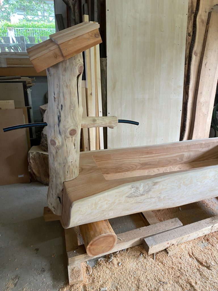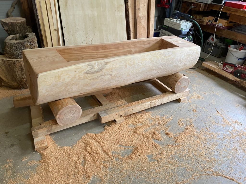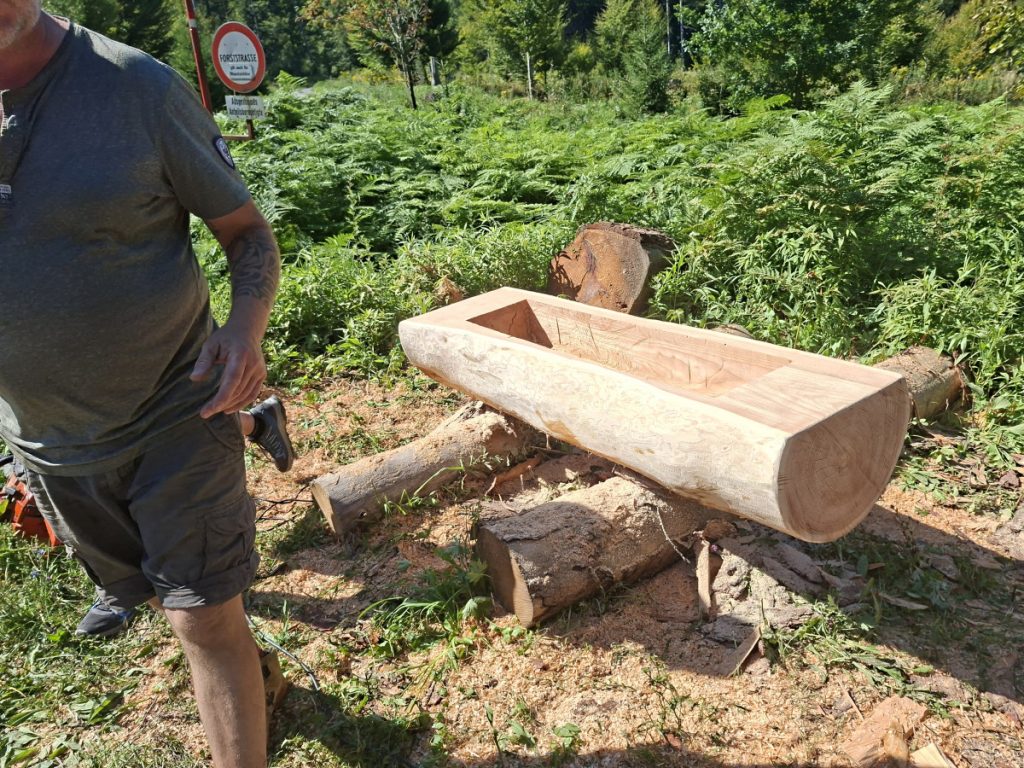 Nachdem Bürgermeister Christian Poglitsch für die notwendigen Genehmigungen gesorgt hatte, erfolgte am 25. August der Startschuss für die Neuerrichtung des Rastplatzes bei der „Maresch Buche“. Toni Robitsch vlg Č̣rnikel spendete einen Lärchenstock und verzauberte ihn gemeinsam mit Robert Gallob vlg Ermann in einen wunderschönen Trinkwasserbrunnen.