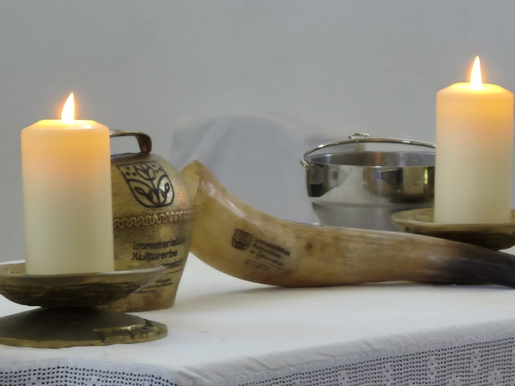 Anlässlich der Übernahme des Georgijagens/Šenturja jahat in das Immaterielle Kulturerbe der Unesco wurden für alle Dörfer des Schulsprengels Latschach spezielle Hörner und Glocken gefertigt.